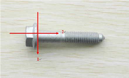 截取試樣:使用切割機QG-1切取螺桿上端,切割方向延上圖所示箭頭1方向,在將螺桿上端橫向切割(箭頭2方向)取其一半。