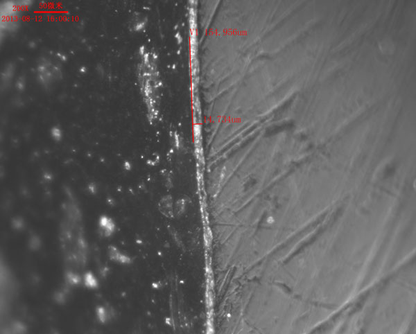 用金相顯微鏡來觀察工件表面涂層厚度的分部及測量各部位涂層的厚度。